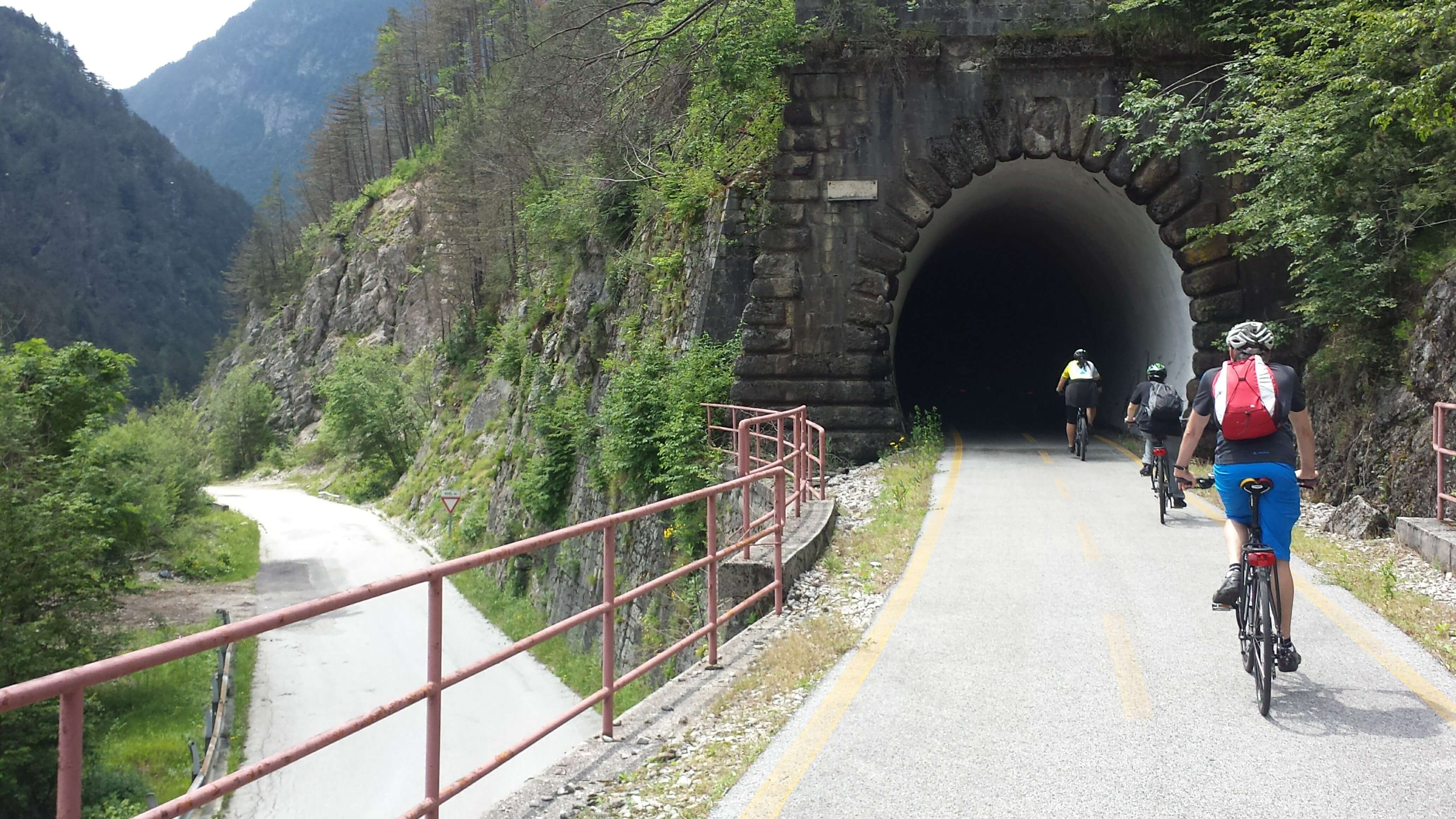 Jedeme i tunelem, cyklostezka Alpe – Adria
