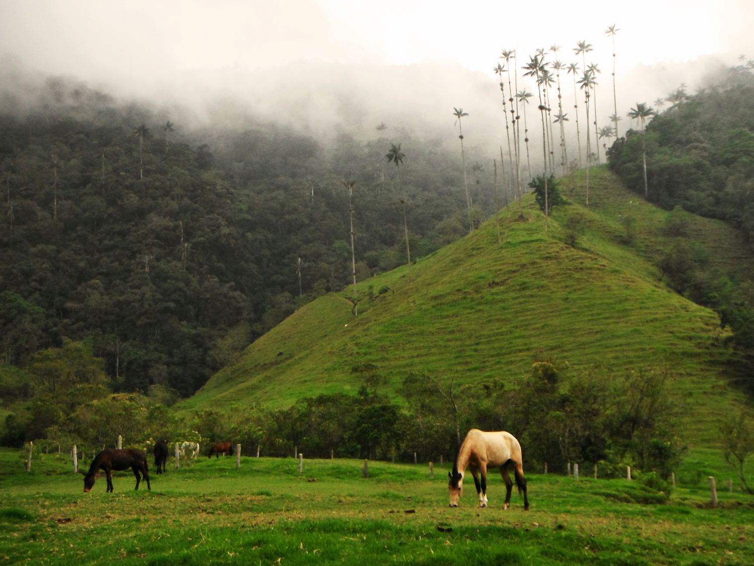 Ve Valle de cocora lze narazit na pasoucí se koně i krávy