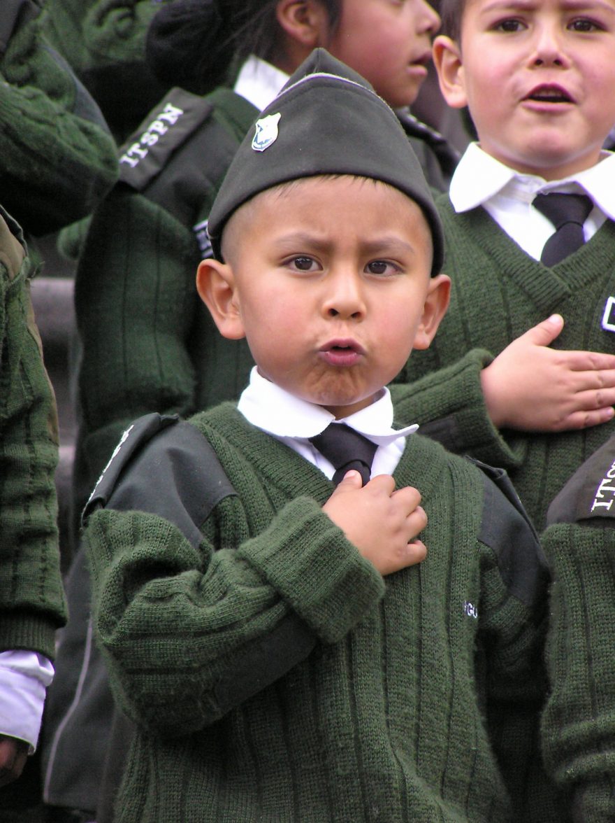 Skupina místních dětí v uniformách, Quito, Ekvádor
