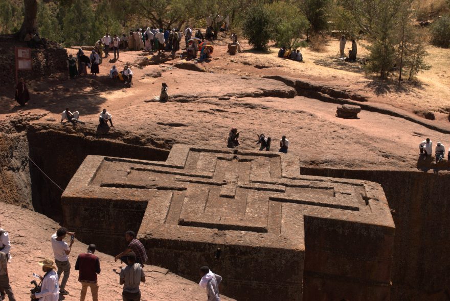 Pohled na davy na zvířecím trhu shromážděné u Lalibely