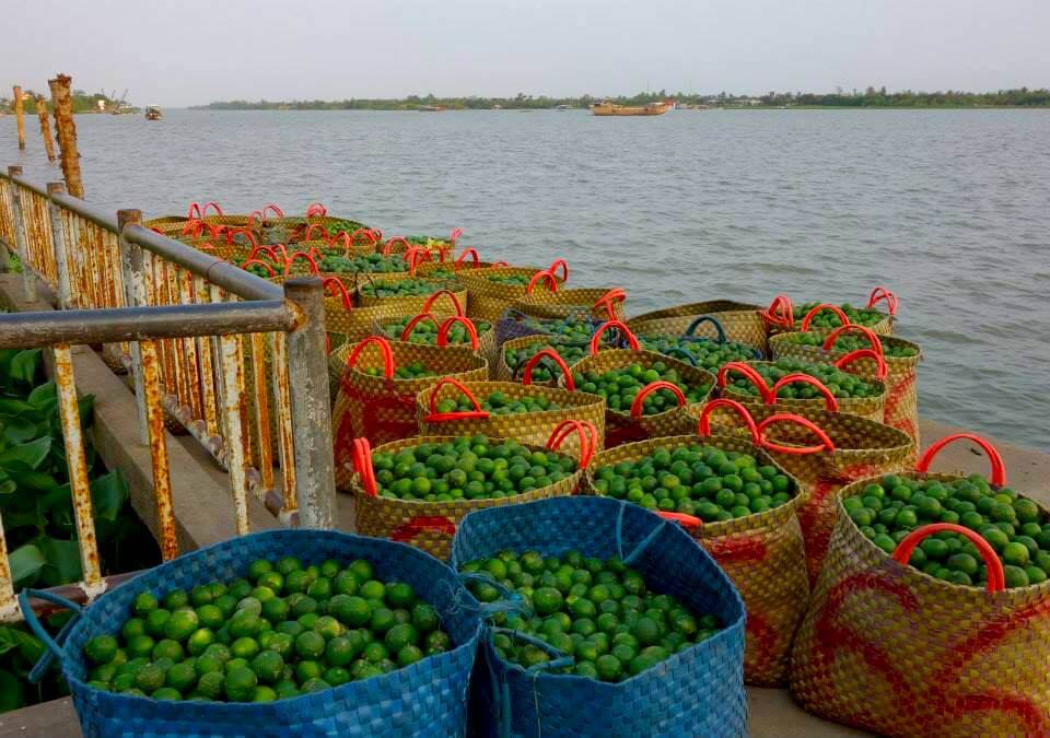 Plovoucí trh s limetkami na Mekongu ve Vietnamu
