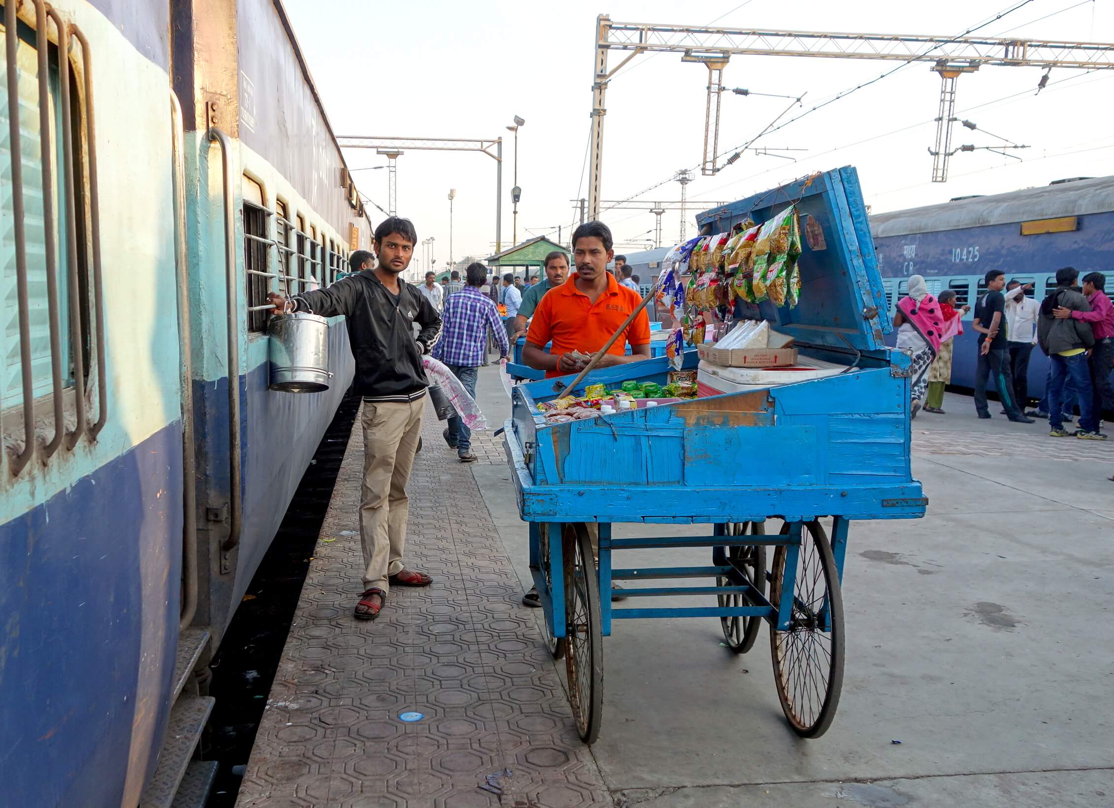 Prodejci občerstvení ve vlakových nádražích v Indii