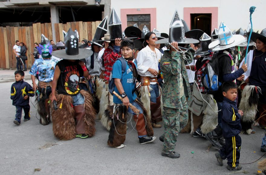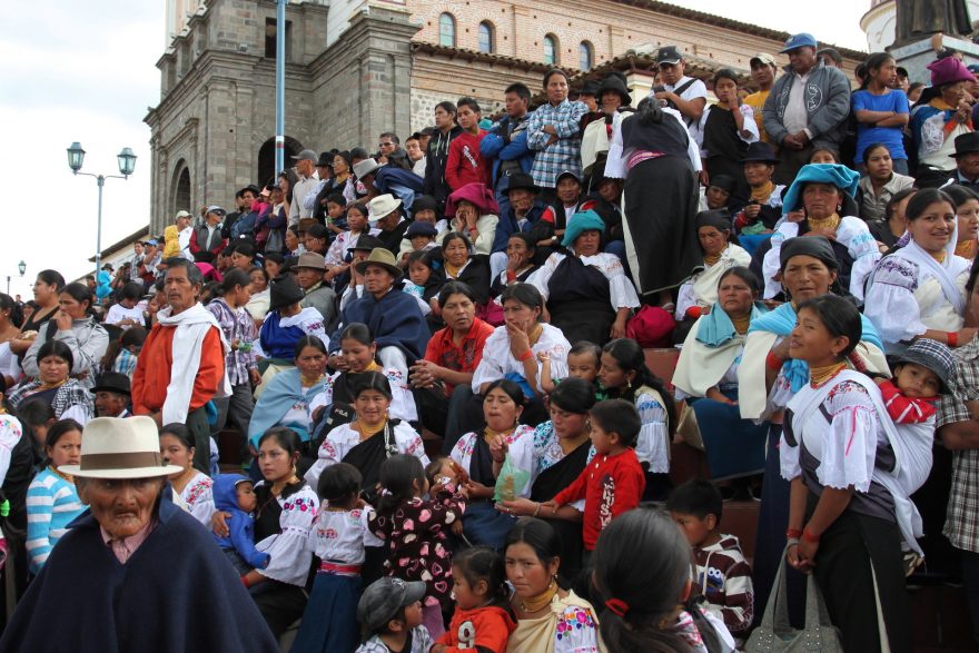 Festivalu se účastní muži různého věku, Inti Raymi v Cotacachi, Ekvádor