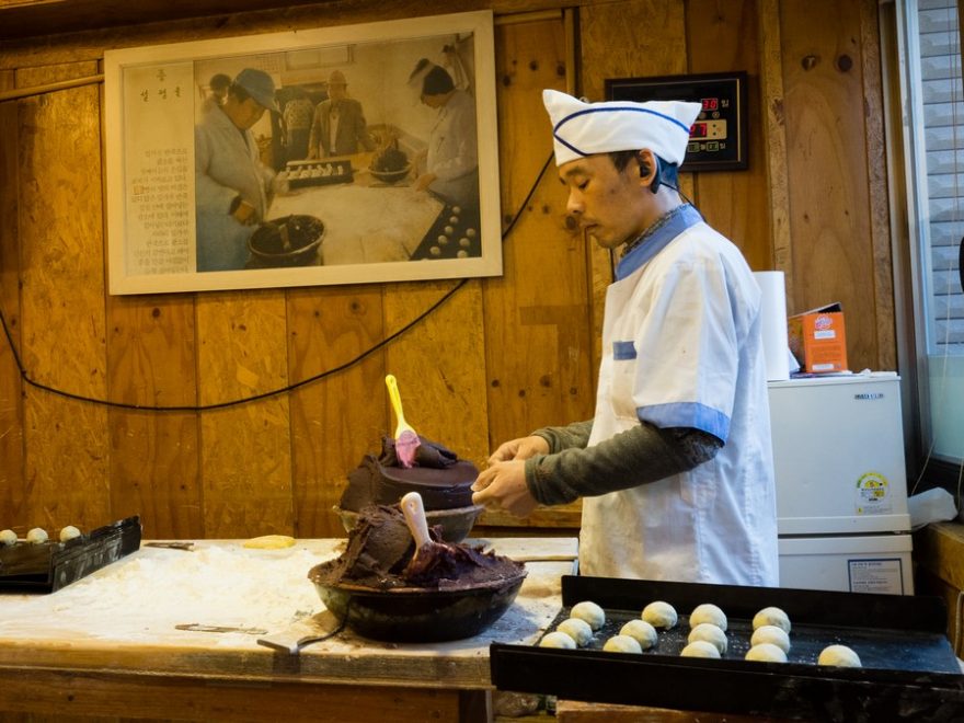Rýžové koláčky tteok jsou oblíbeným dárkem v období Čuseoku, Soul, Jižní Korea