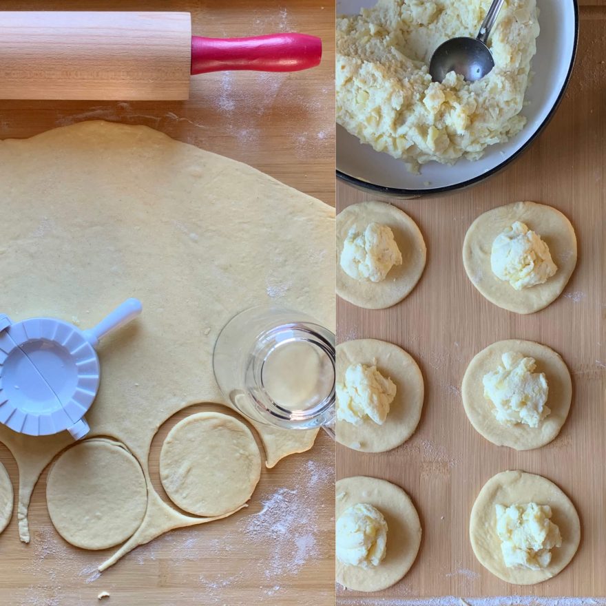 Do jejich středu vložíme cca jednu lžíci nádivky. Těsto přeložíme, okraje slepíme.