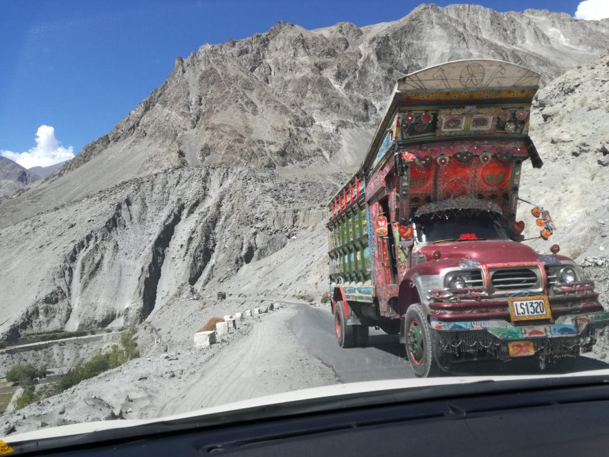 Tradiční vozový park před vjezdem na KKH, Pakistán