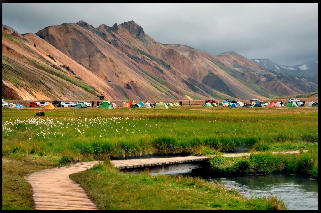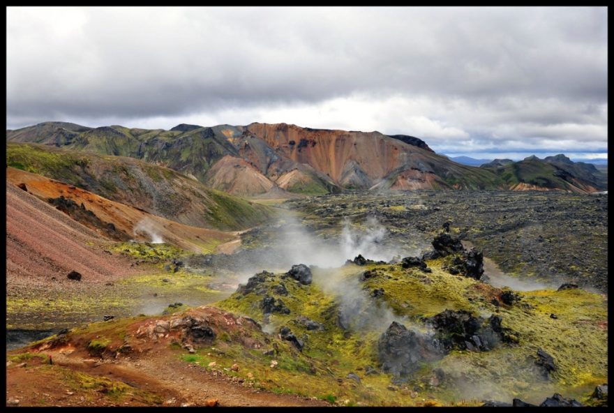 Landmannalaugar, výchozí bod treku Laugavegurinn, Island