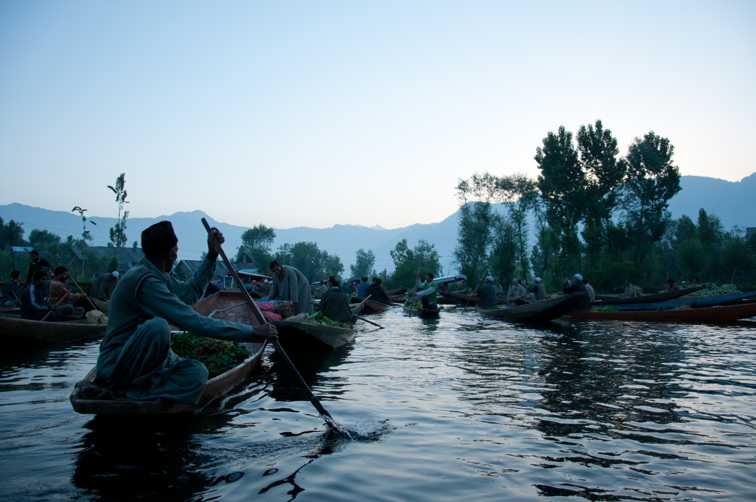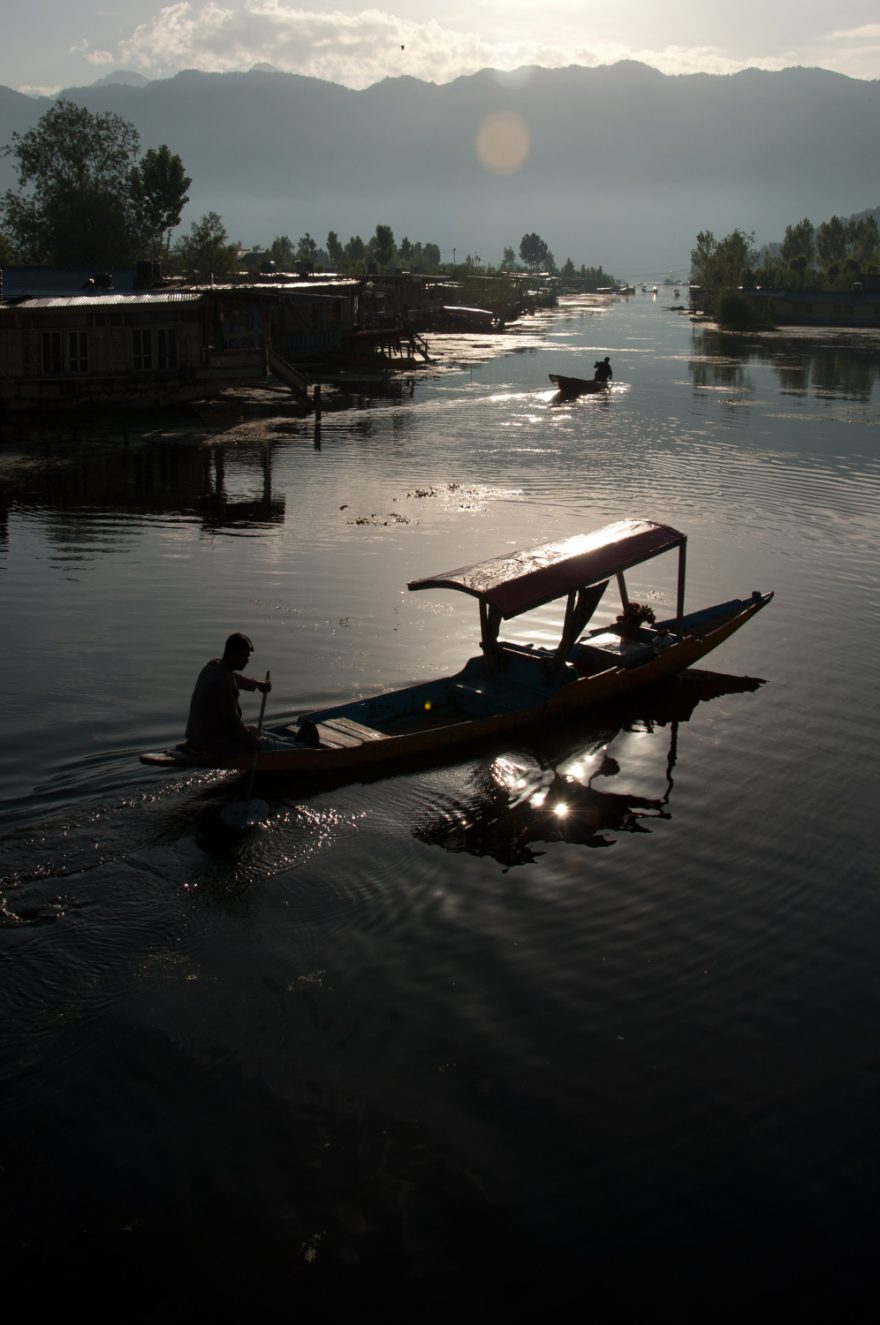 Plovoucí trh na jezeře Dal ve Šrínagaru, Indie
