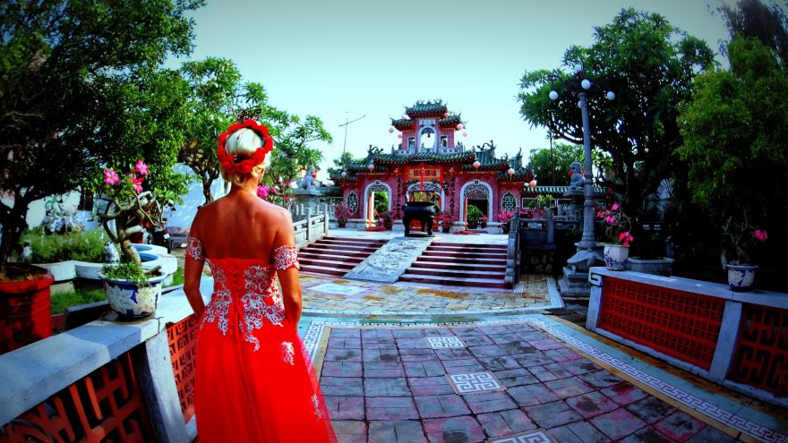 Galerie: FOTOREPORTÁŽ: Na své cestě kolem světa se fotí v místních tradičních krojích. Teď o ní natáčí thajská televize