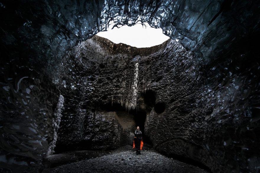 Ledovcové jeskyně v led. Jazyku Breiðamerkurjökull zásobující ledovcovou lagunu Jökulsárlón, východní část oblasti.