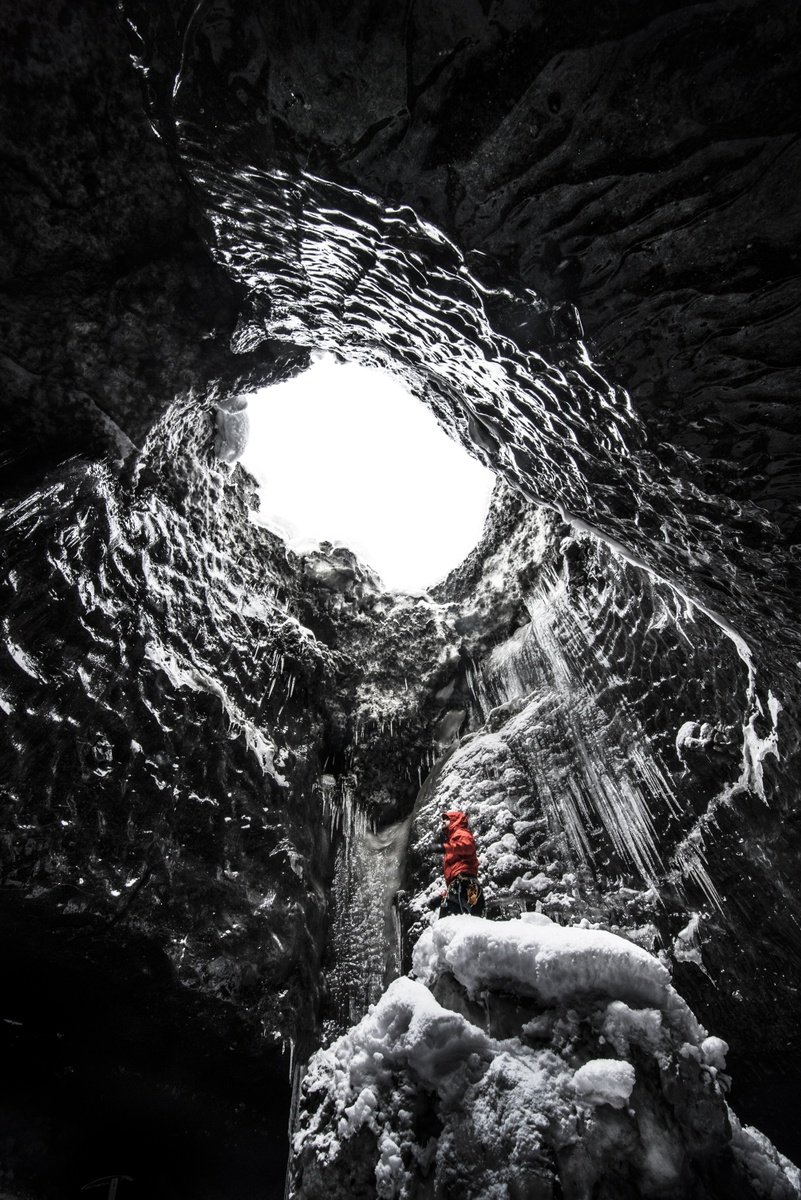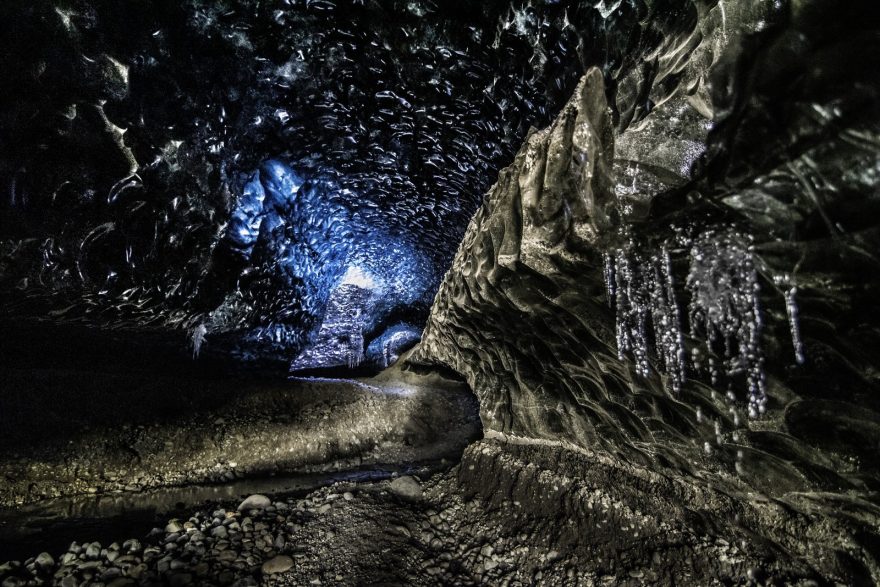 Ledovcové jeskyně v led. jazyku Breiðamerkurjökull zásobující ledovcovou lagunu Jökulsárlón, západní část