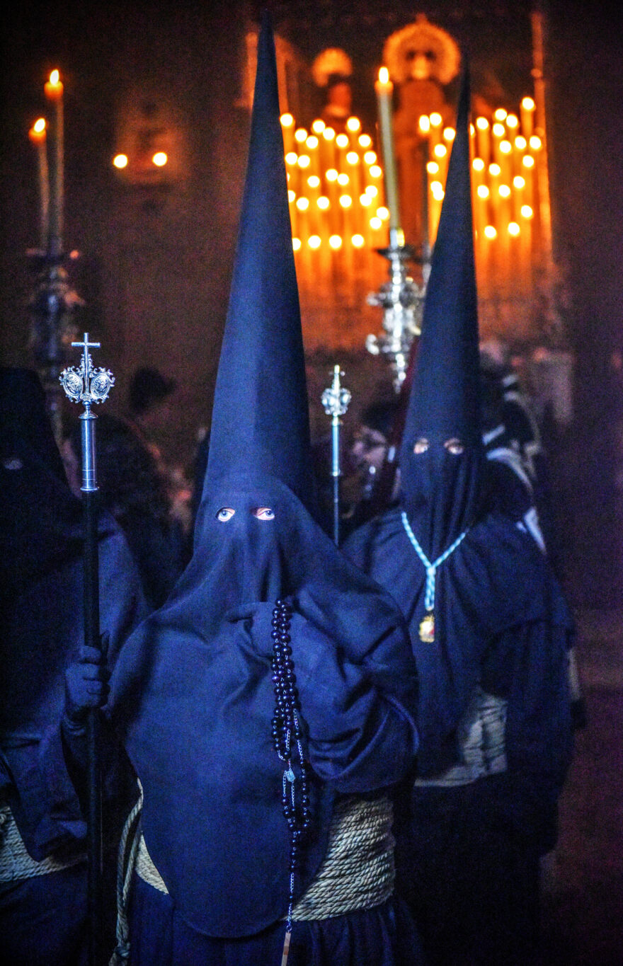 Členové bratrstva čekají u východu z chrámu na začátek několikahodinové pouti městem. Autor: Vojtěch Vlk
