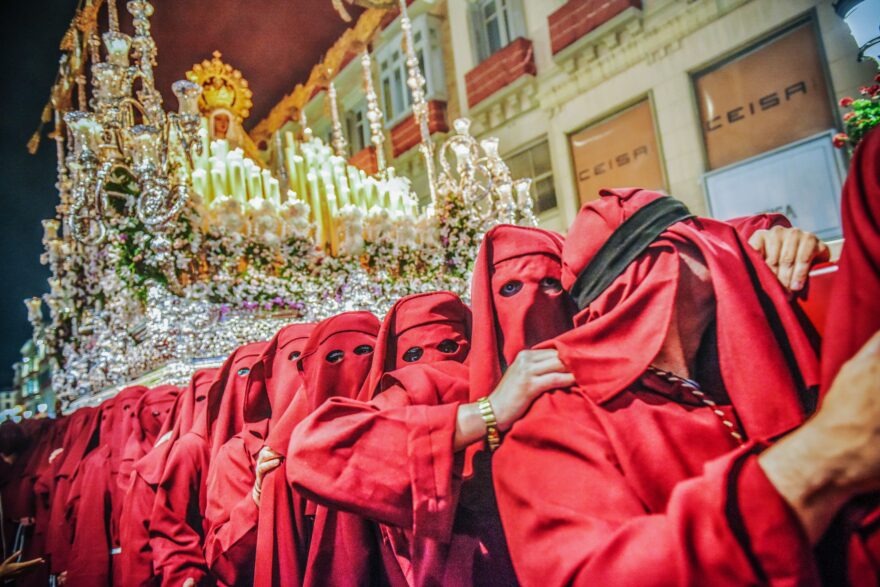 Každý z kajícníků, který nese sochy svatých, má na svých ramenou váhu několika desítek kilogramů. Během několikahodinového putování se často dostavuje únava a bolest. Autor: Vojtěch Vlk