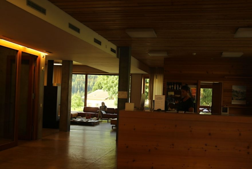 Hostel Scuol může zvenku vypadat poněkud stroze, Švýcarsko