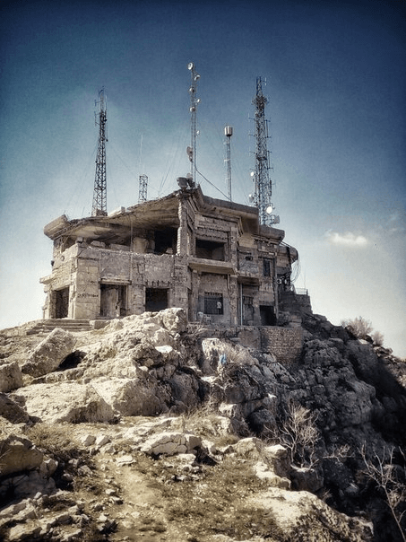 Zničená Saddámova vila na hoře Gara, Kurdistán, Irák