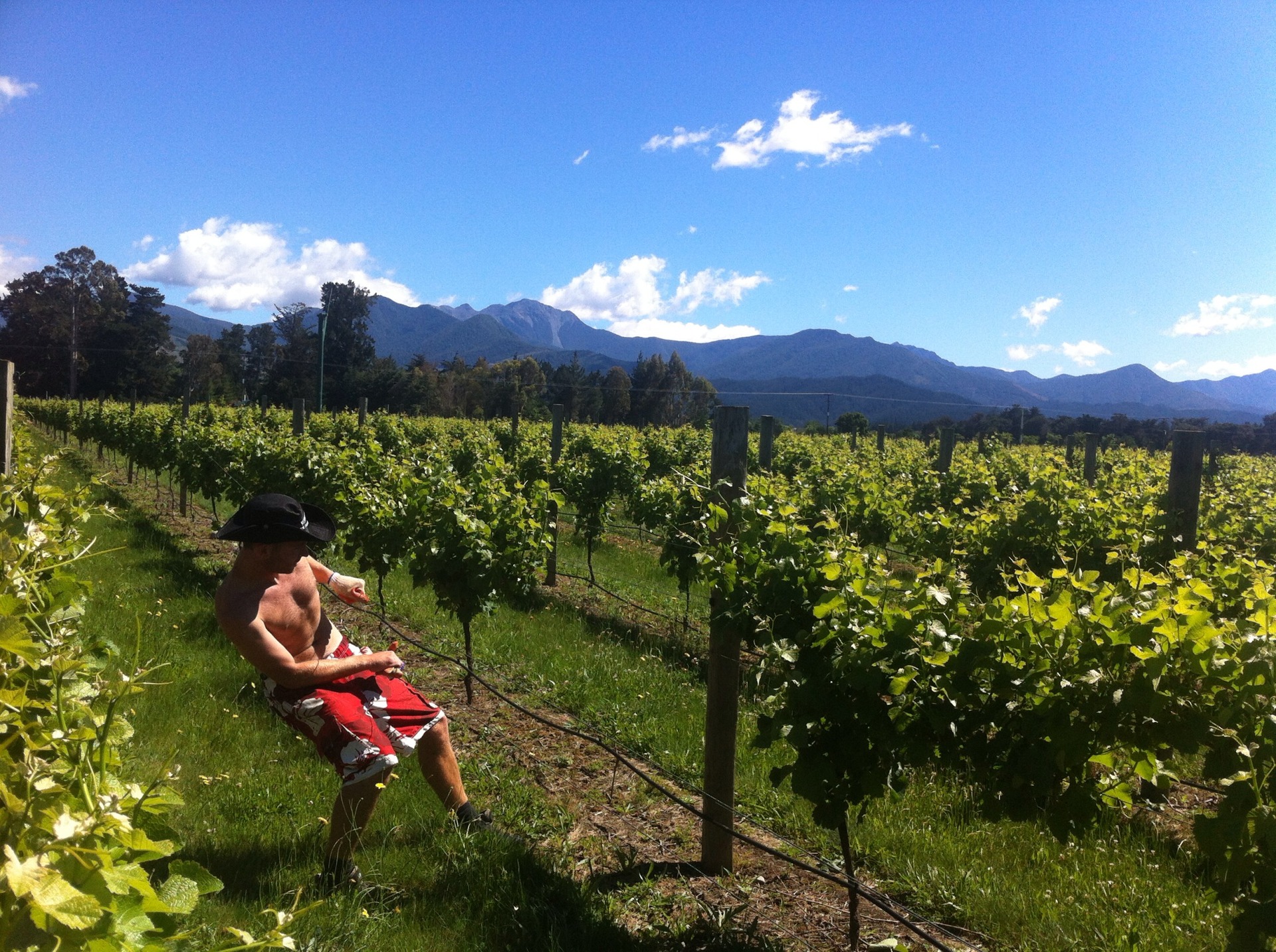 Natahování drátů na vinicích, Blenheim, Nový Zéland