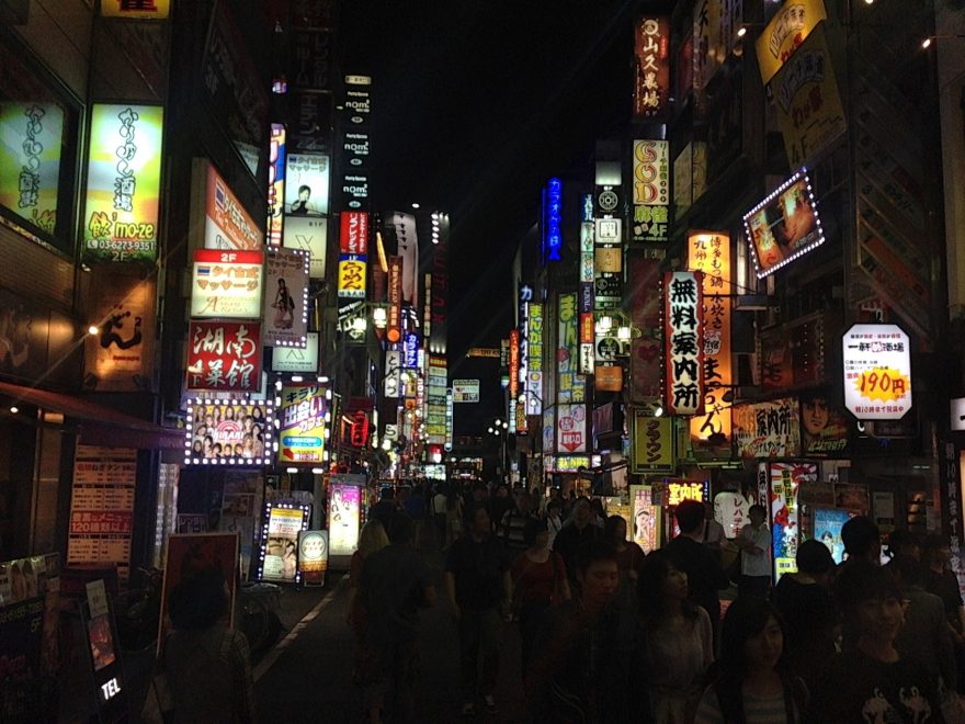 Shinjuku v noci, občas najít tu správnou restauraci může být problém. Nebo vůbec restauraci, Tokio, Japonsko