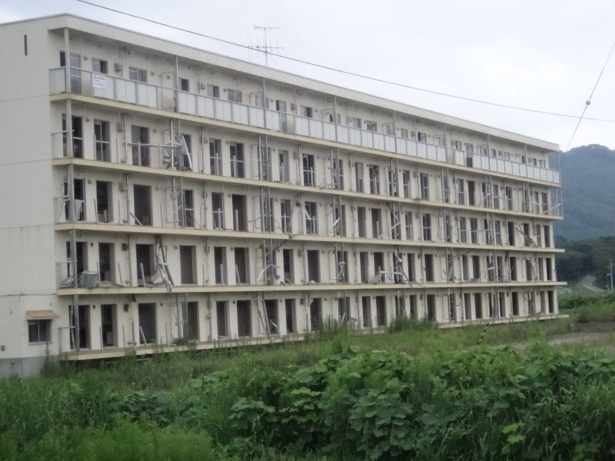 Stará vlaková linka vedla skrz město Rikuzentakata, Japonsko