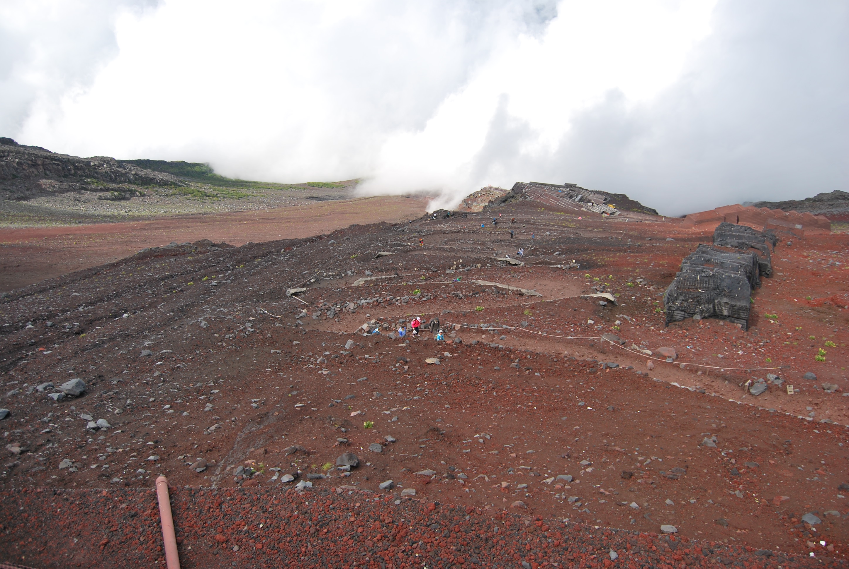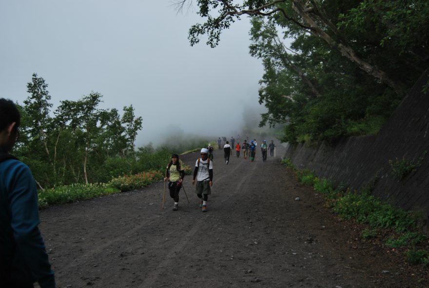 Cesta místy připomíná měsíční krajinu, hora Fudži, Japonsko