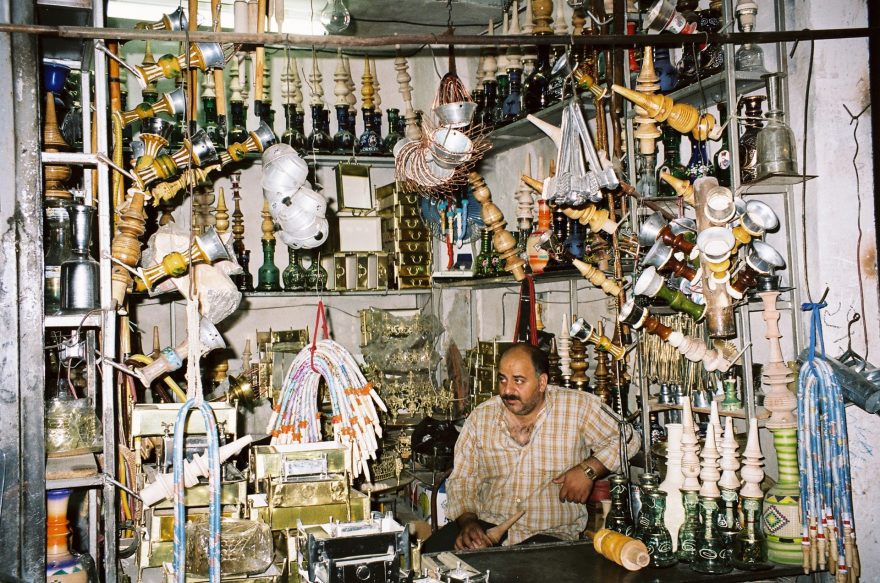 Vodní dýmky, čajovna Hamám-e-Chán, Kášán, Írán