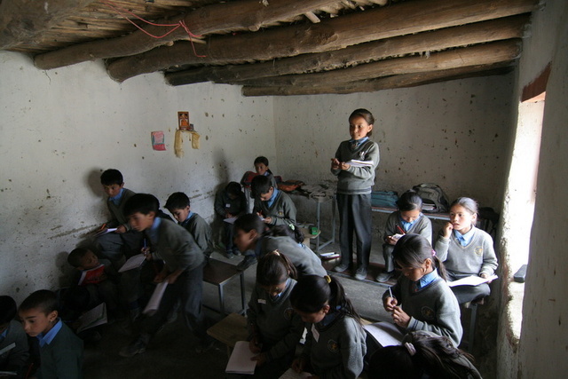Dobrovolnící pomáhají s opravou školy, Ladakh, Indie