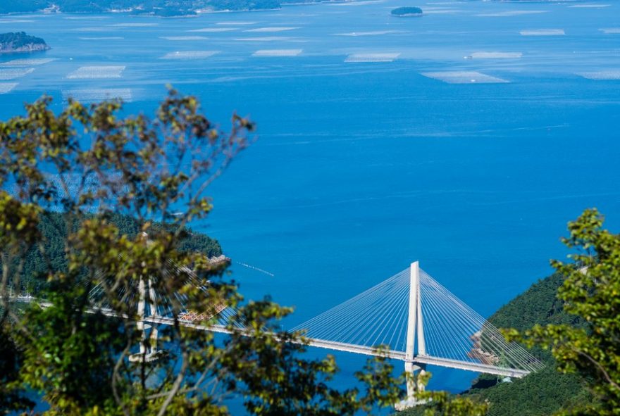 Výhled na ostrůvky parku Hallyeohaesang, Jižní Korea