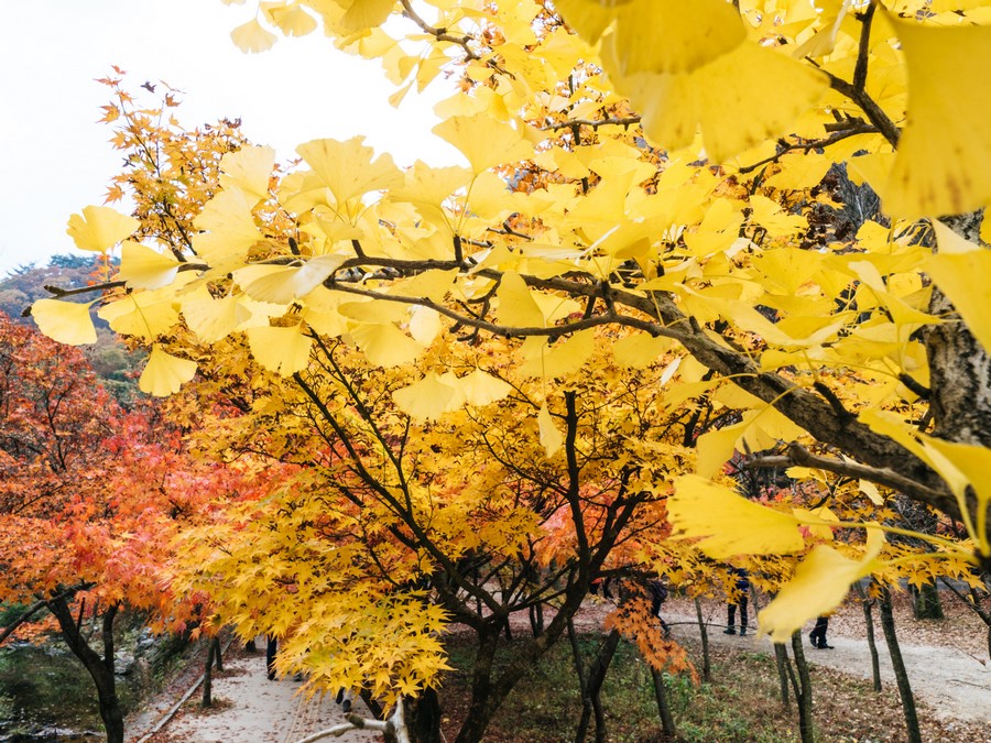 Za podzimní zbarvení vděčí země nejen javorům, ale třeba i jinanům, Naejangsan, Jižní Korea