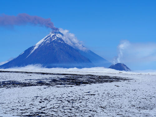 Ključevský vulkán je s výškou 4750 m nejvyšší činnou sopkou Euroasie, Kamčatka, Rusko