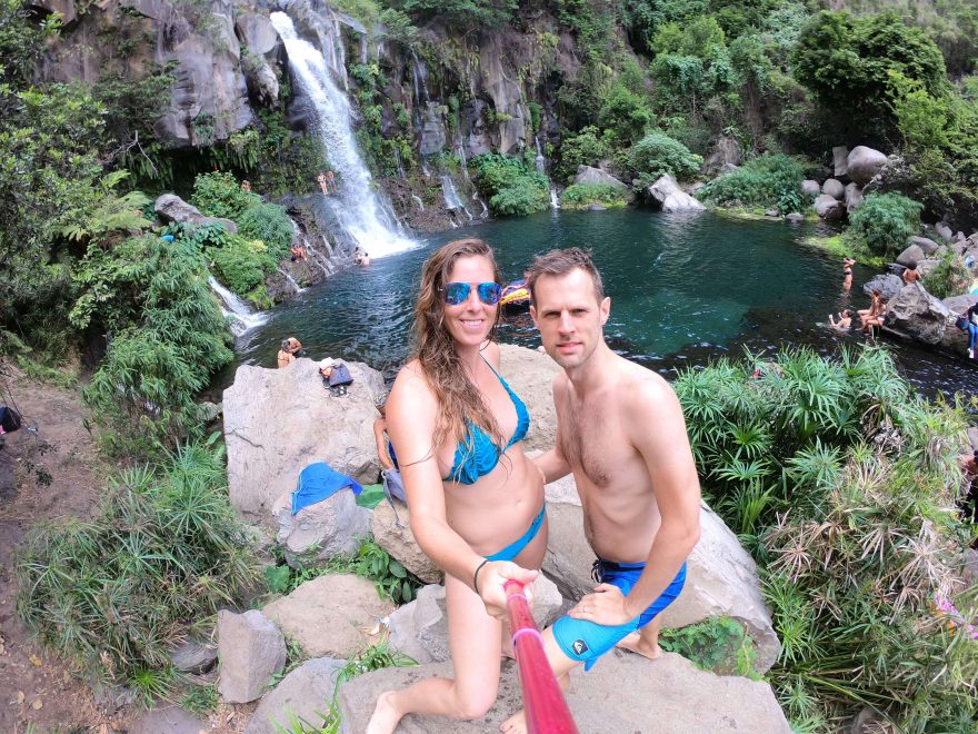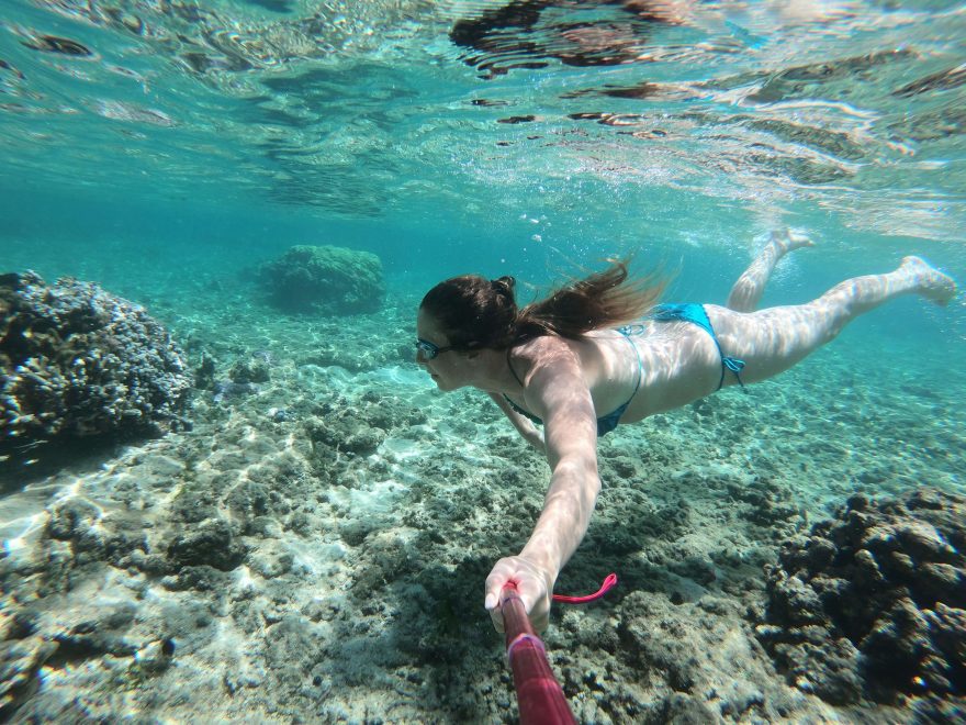 Koupání v oceánu – pláž L`Hermitage les Bains –> průzračná voda s korály a rybičkami