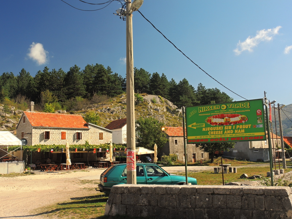 Reklamní poutače ve městě Lovčen, Černá Hora