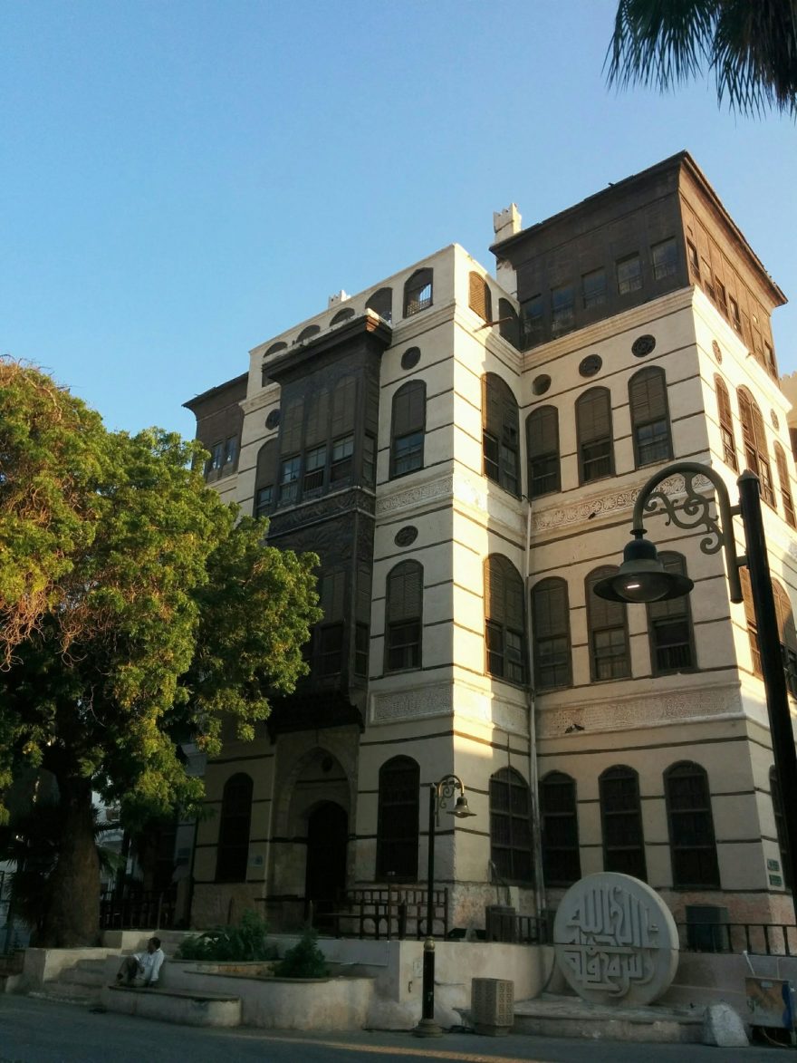 Nápis na domě je ve smutném kontrastu s jeho stavem, snad jen prozatím… Džidda, Saudská Arábie