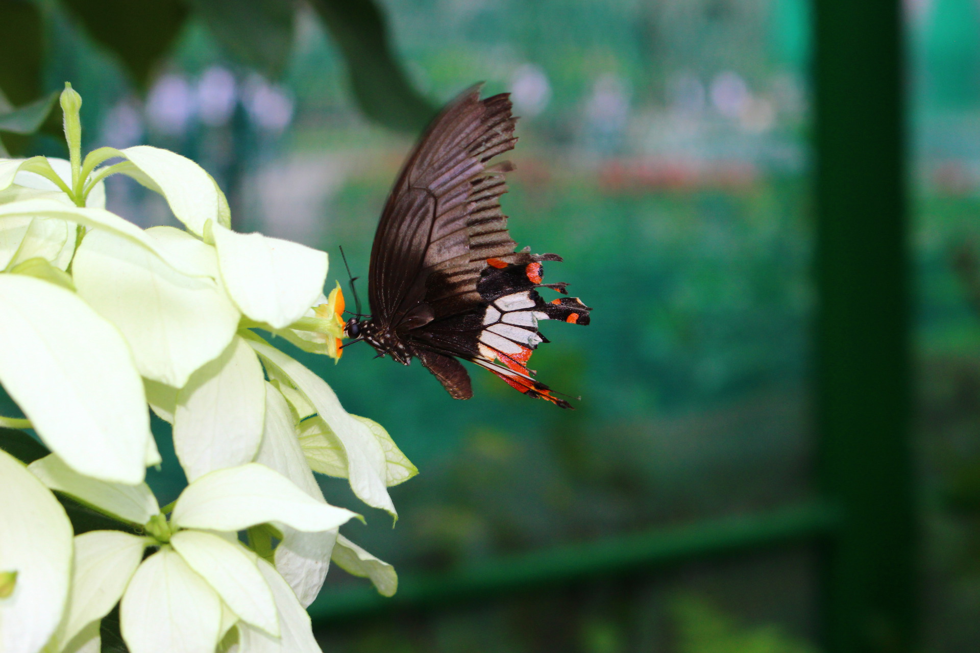 Jeden z úlovků motýlího pavilonu v botanické zahradě., Saigon, Vietnam