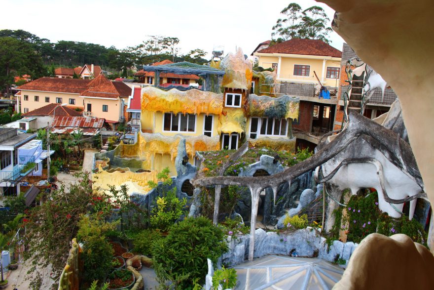 Barevná obydlí Bláznivého domu ve městě Da Lat, Vietnam