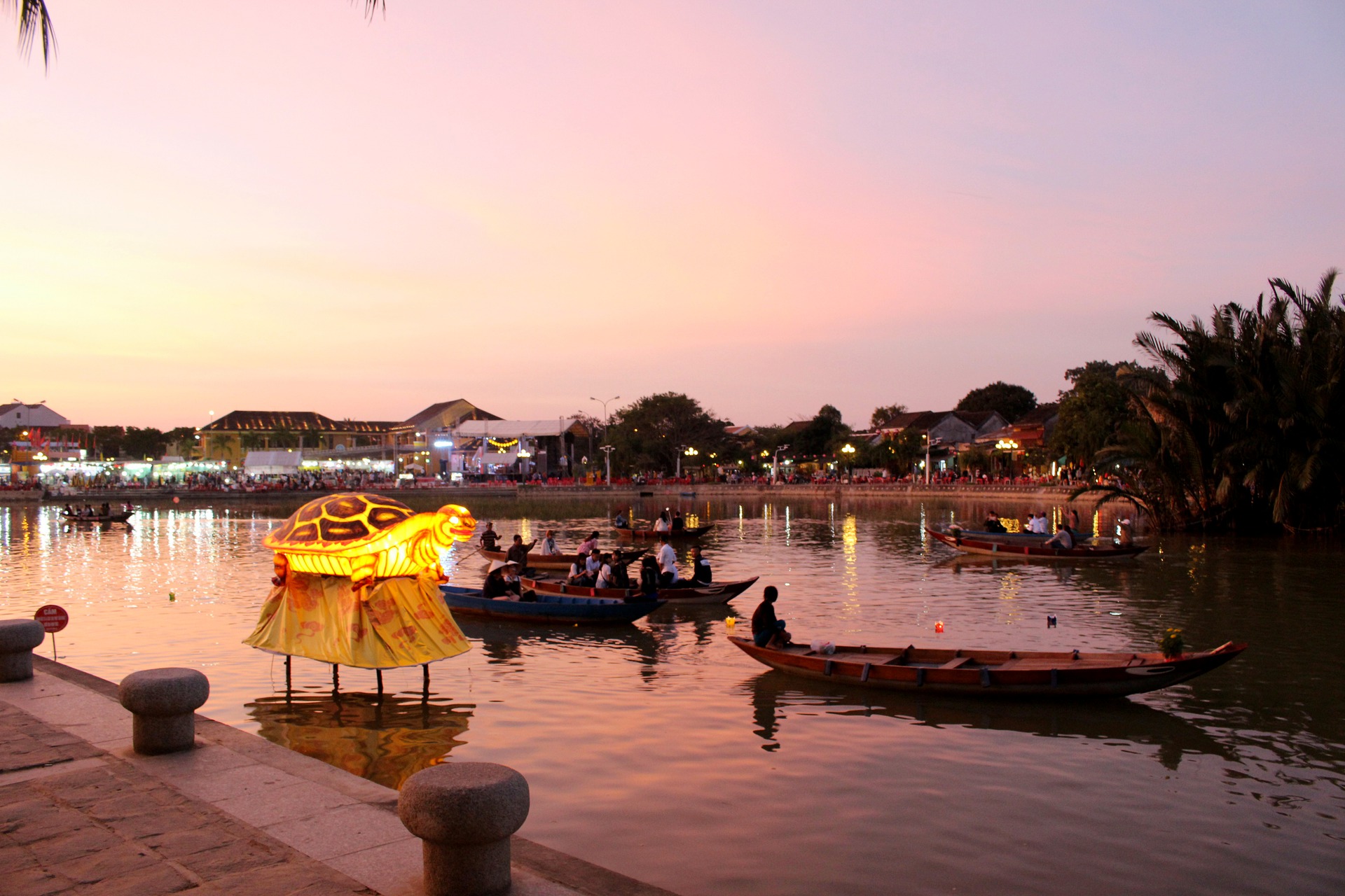 Novoroční dekorace na řece Thu Bon, Hoi An, Vietnam