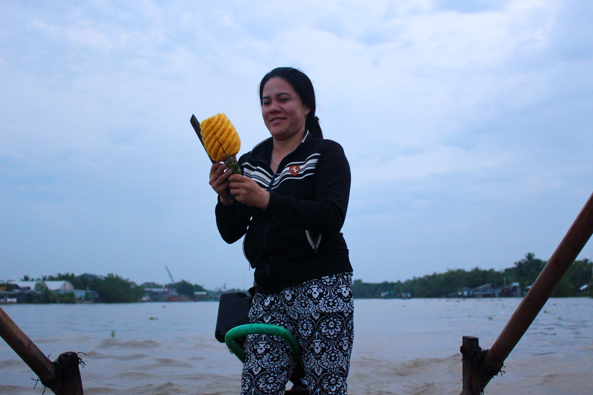 8. Naše průvodkyně našeho dopoledne na plovoucích trzích, Can Tho, Vietnam