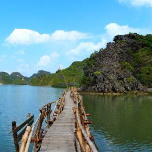 Dřevěný most, okolí ostrova Cat Ba, Vietnam-