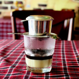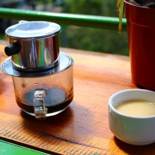 Tradiční překapávaná káva, Nha Trang, Vietnam