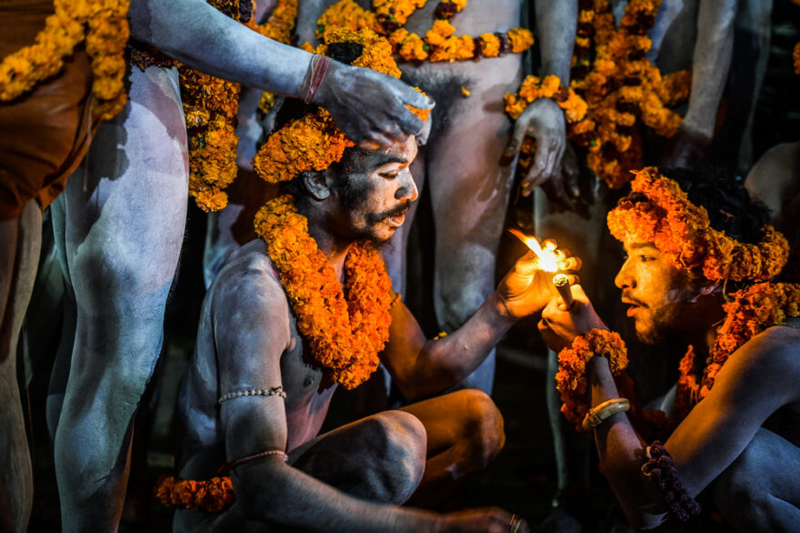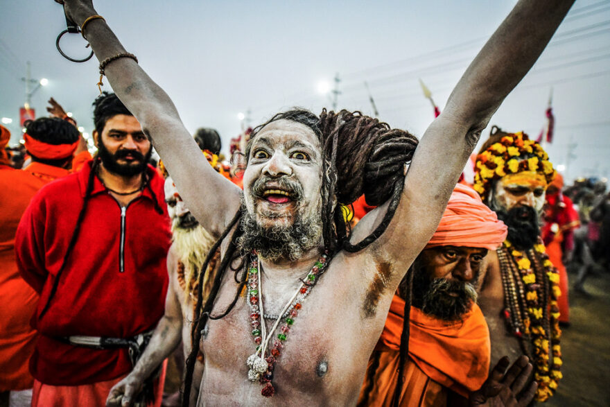 Průvod Naga Sadhus se blíží k soutoku řeky Gangy a Jamuny v místě zvaném Sangam. Euforie vrcholí. Svatí muži se rozbíhají ke skoku do vod posvátné řeky, aby vykonali rituální koupel.