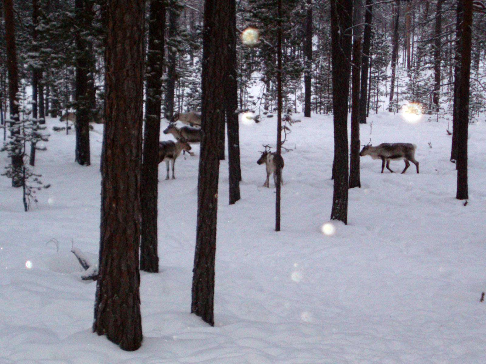 Polární sobi se v podvečer potulovali kolem našeho srubu