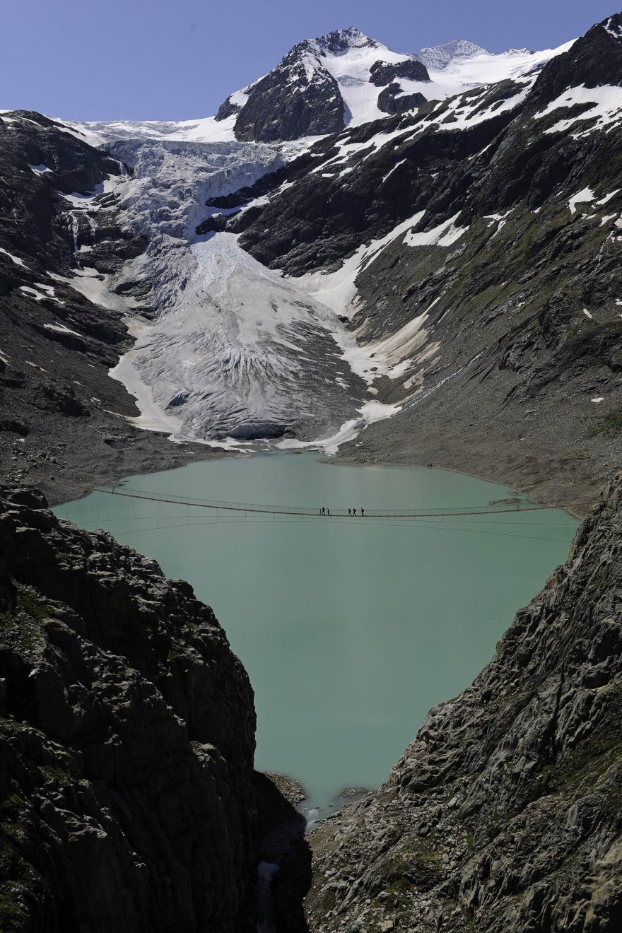 Galerie: Ledovcový ráj Trift s lanovým mostem i alpskou tsunami