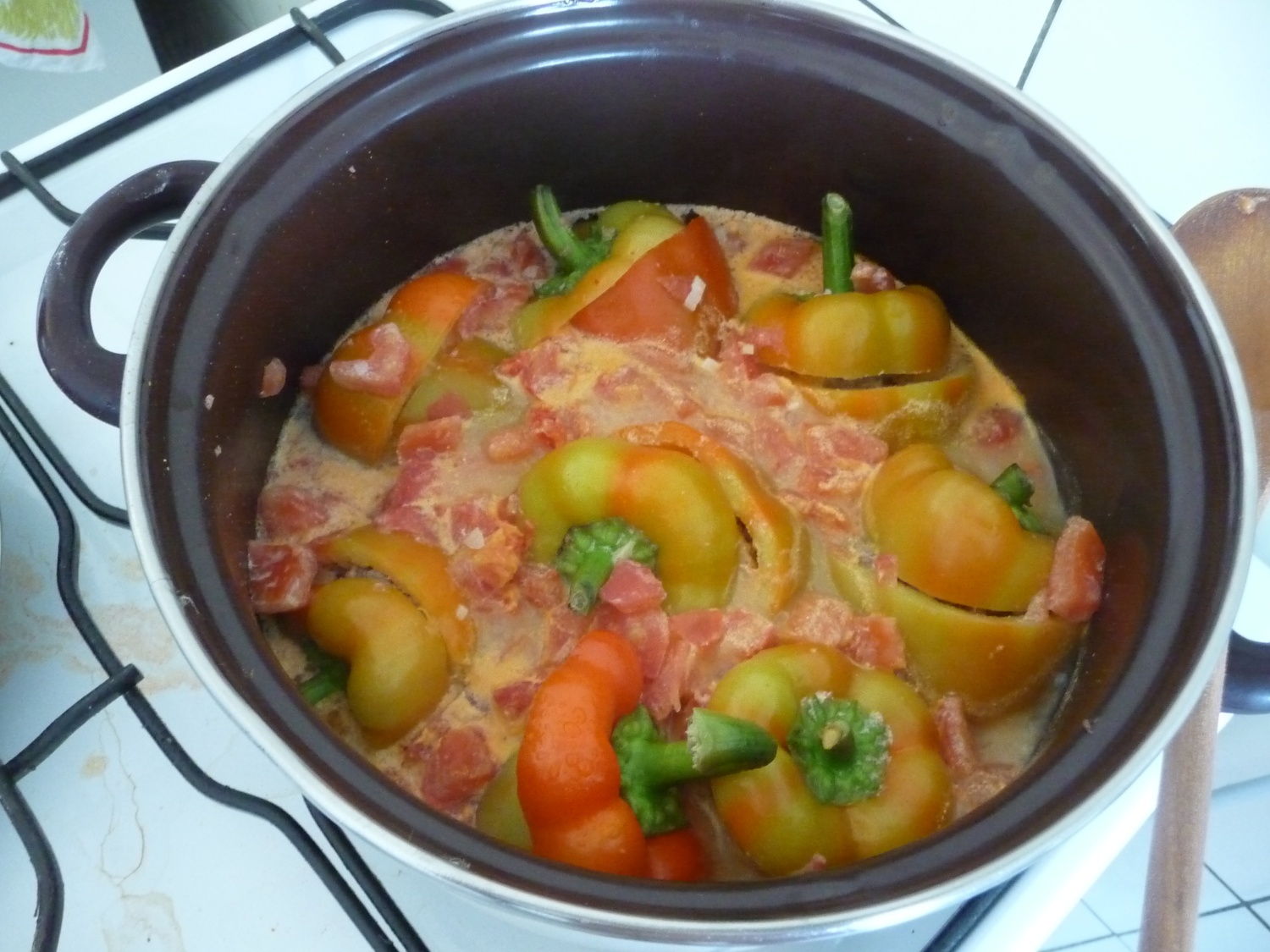 Příprava gruzínských plněných paprik v brněnské kuchyni
