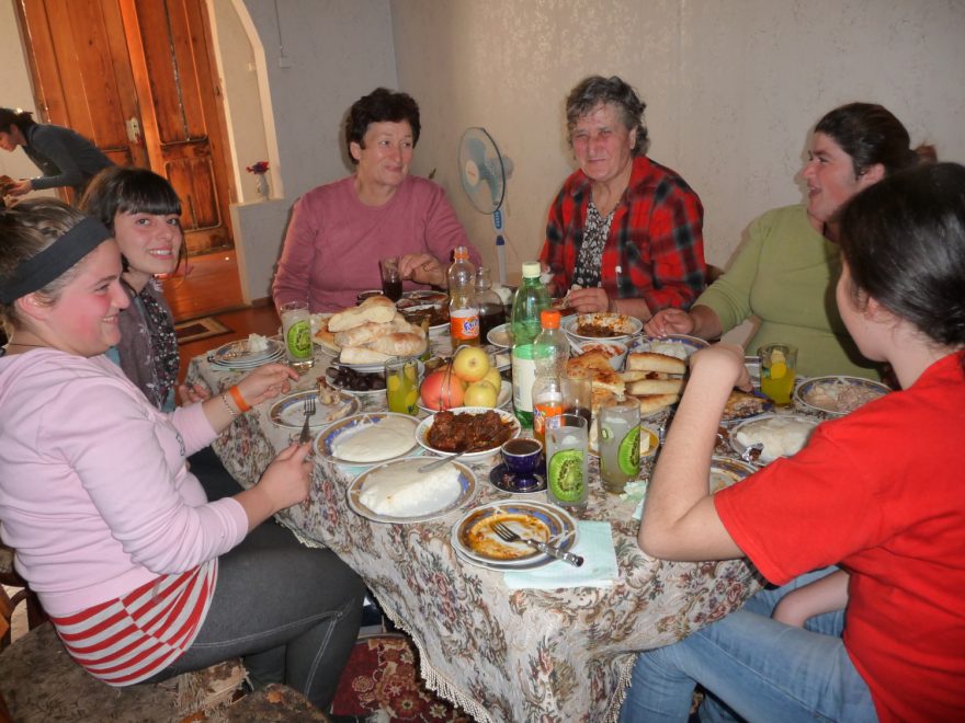 Rodinná sešlost – oběd na uvítanou ve vesnici Kachati, region Samegrelo, Gruzie
