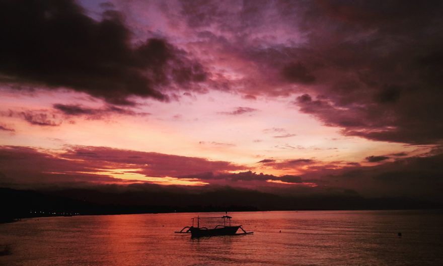Lovina – západ slunce, Bali, Indonésie