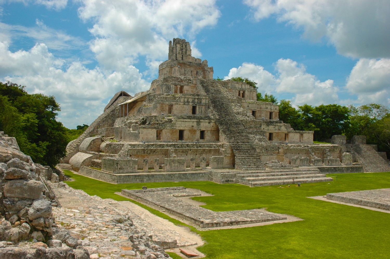 Pětipatrový chrám Templo de los Cinco Pisos v Edzna, Mexiko