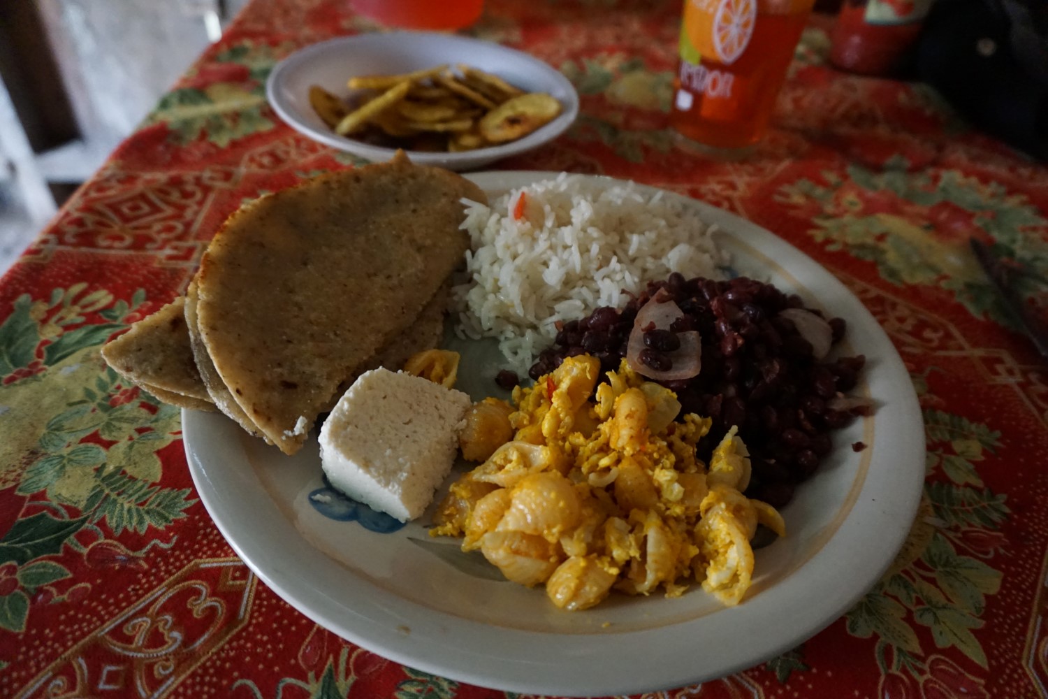 Tak tuhle kombinaci jsem miloval. V tortillách je zapečený sýr, většinou byly nasucho, Nikaragua