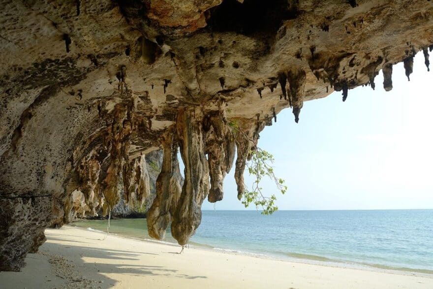 Jeskyně, soutěsky a tunely ve skalách jsou na vápencových ostrovech pobřeží Andamanského moře časté.
