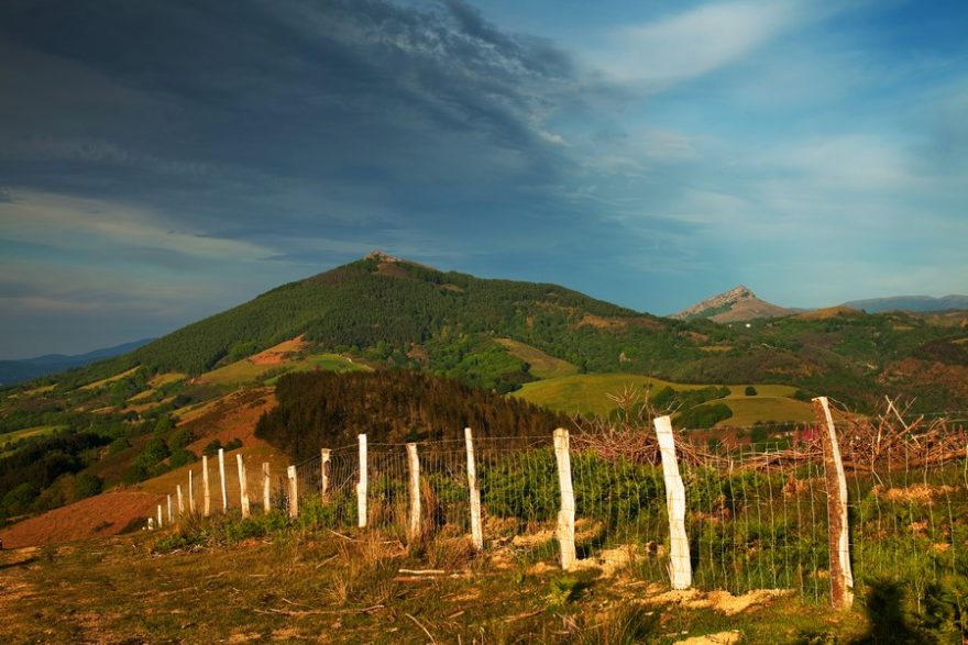 Kopečky v podhůří Pyrenejí jsou už v květnu zbarvené do sytě zelené