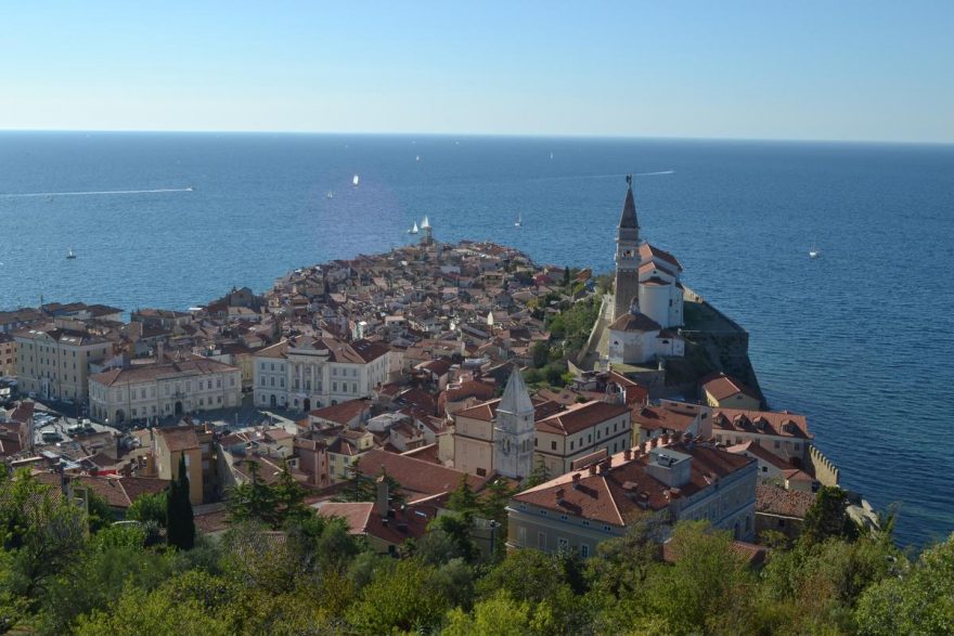 Jezeru Bled dominuje malebný ostrůvek s kostelíkem a výhledy na hraniční hřeben Karavanek.