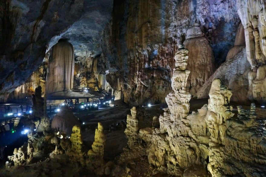 Bahnitá jeskyně Mua Cave (Jeskyně Tančících dívek), kde byla za dob Vietnamské války vojenská nemocnice, Vietnam