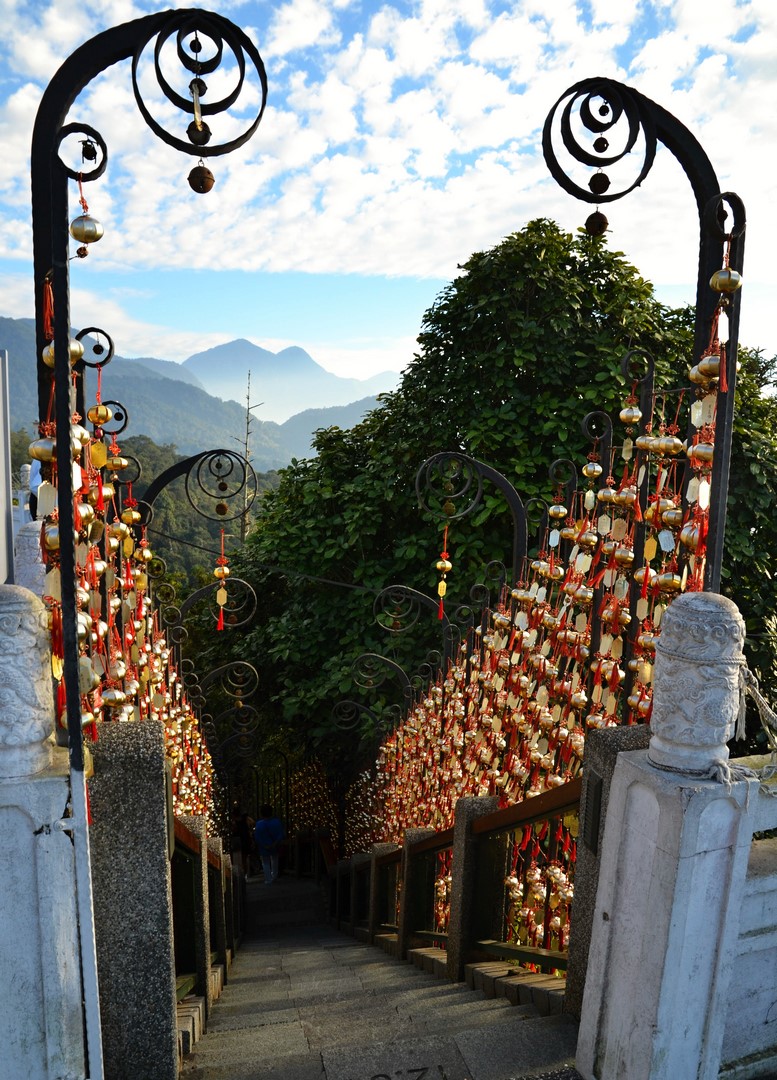 Schodiště o 365 schodech vedoucí od Jezera slunce a měsíce k chrámu Wen-Wu